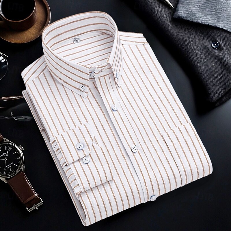 Men's Dress Shirt Button Down Shirt Oxford Shirt Non Iron Shirt Striped Shirt Plaid / Striped / Chevron / Round Wedding Office & Career Light Blue White Navy Blue Royal Blue Long Sleeve Shirt Collar 25