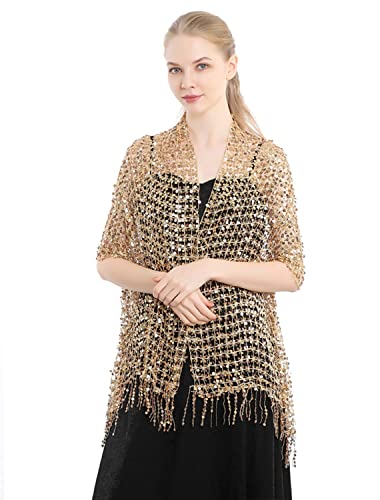 • [Shimmer Metallic Thread Accent] The shawl is made up of 100% polyester, which is odorless and measures about 62.99 by 17.72 inches, fringe 5.91 inches each side and the shimmer metallic thread accent of the shawl makes you sparkle under the light