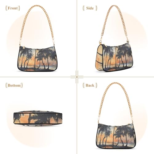 More information about Beach Watercolor Painting Tropical Classic Purse Hobo Totes Women Medium Handbag Tote Vintage Colorful Shoulder Bag Zipper Closure