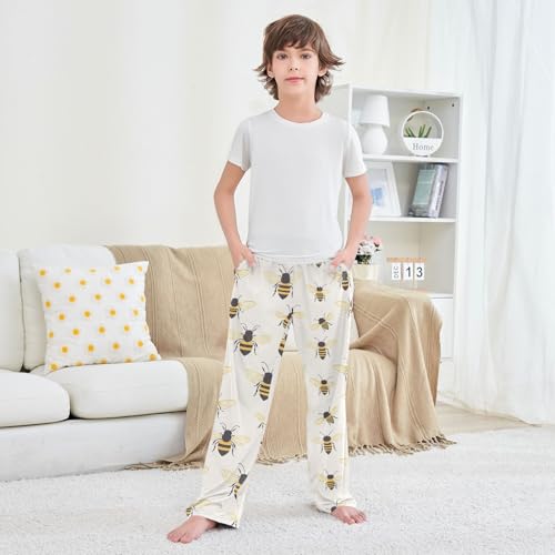 Bees Pattern Boys Pants Boys Athletic Pants Long Pant for Boywith Pockets Wide-Leg Size 6-14Y 6