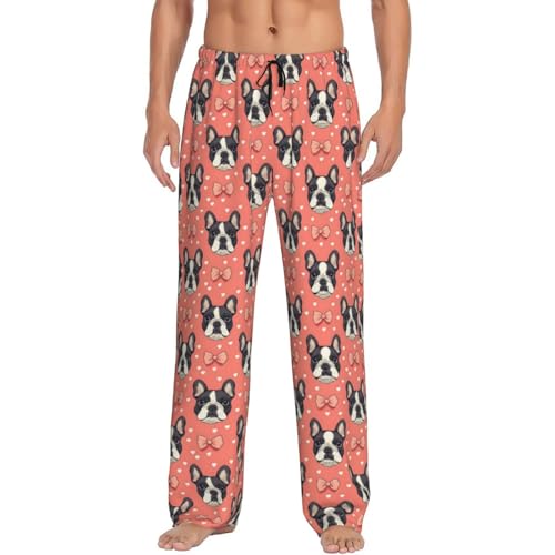 Mens Pajama Pants - Pink Bow French Bulldog Print Soft Sleep Lounge Pants For Men, Casual Pj Bottoms With Pockets 1