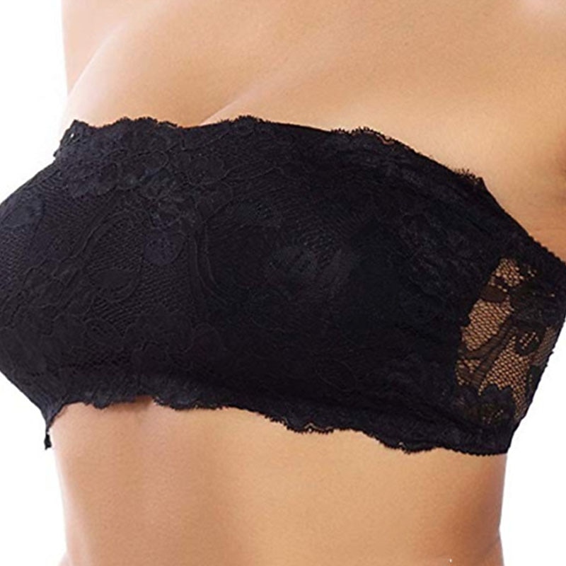 Highlights [Fabric] : Crafted from high-quality polyester, this bandeau bra features a delicate lace overlay that offers a feminine and elegant appearance. The lace fabric is soft and breathable, providing a comfortable wearing experience suitable for all-day use. [Fit] : Designed with a seamless fit, this strapless bandeau bra lies smoothly under clothing, ensuring no visible lines. The full coverage cup and micro-elastic material offer support and a secure fit, perfect for wearing with off-shoulder tops and dresses. [Design Highlights] : The bra includes intricate lace scalloping along its edges, adding a touch of sophistication and style. Its scoop neck design further enhances its elegance, making it suitable for various fashionable looks. [Occasions] : Ideal for dates, parties, evening events, and casual daily wear, this bra combines functionality and chic style. It provides enough support and elegance to complement a multitude of outfits and occasions. [Size Range] : Available in sizes S, M, L, and XL, this bra caters to a wide range of body types, ensuring a perfect fit for many. The pull-on closure system simplifies wear, adding to its appeal and versatility.