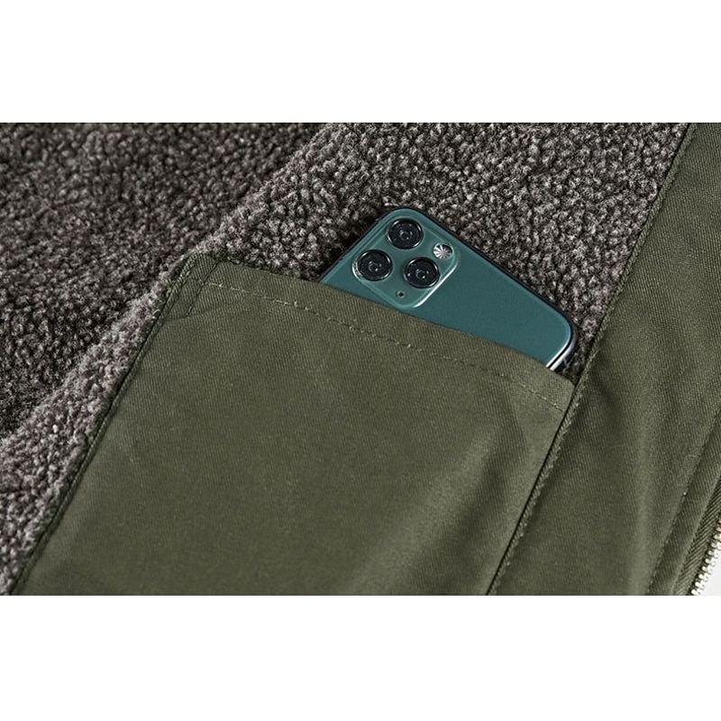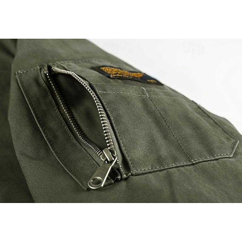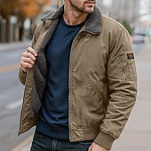 More information about Men Outdoor Jacket Bomber Jacket Padded Sherpa Training Outdoor Thermal Warm Windbreaker Fleece Collar Winter Solid Color Casual Collar Regular Black Khaki Army Green Jacket