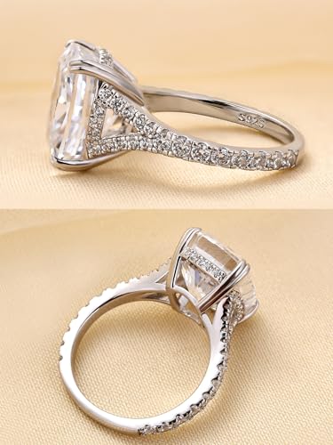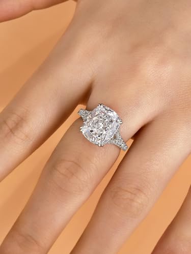 4.5CT Cushion Cut Engagement Ring with Split Shank, 925 Sterling Silver CZ Simulated Diamond Promise Ring for Women 6