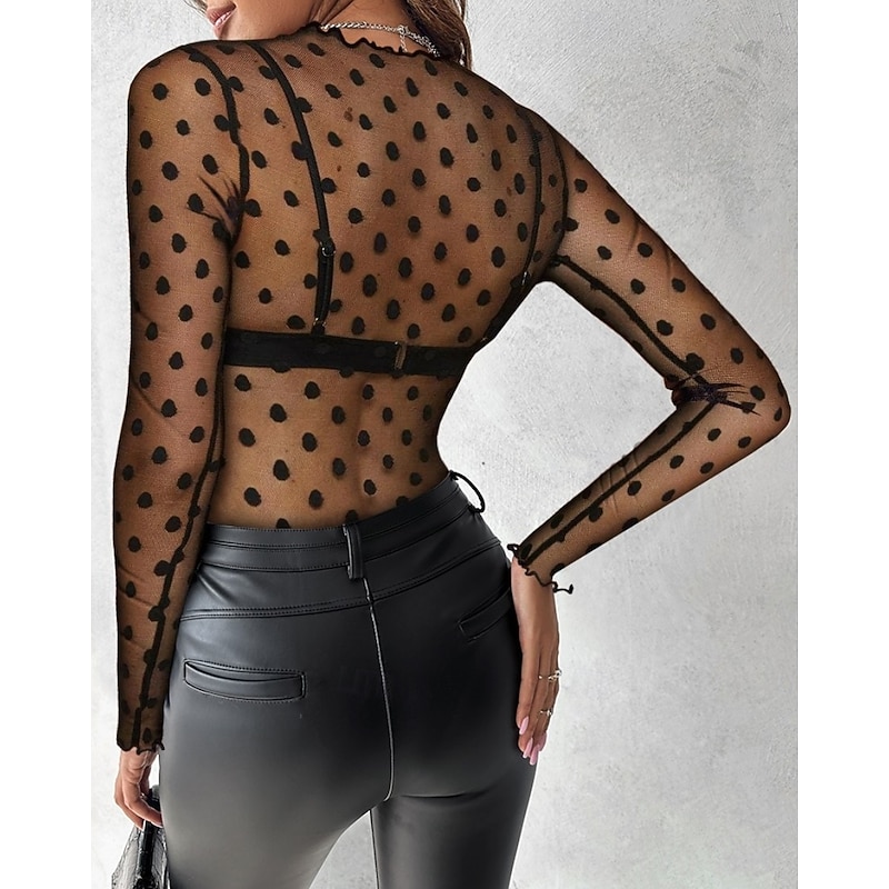 Blouse Women's Transparent Black 6 black Black Embroidered Flower / Plants Lace Hole Daily Elegant Lace Round Neck S 5