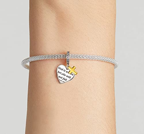 • ❤MATERIAL❤ Cross Dangle Bible Verse Charm, "God is within her,she will not fall Psalm 46:5",18K real gold plated, perfect fits Pandola bracelets.Compatible with Biagi, Troll and Chamilia European bracelets. Fit for both necklace and bracelet.The charm are proved to be body-safe after rigorous contact test. Without any harmful ingredients, it's nickel-free, lead-free, cadmium-free and anallergic.