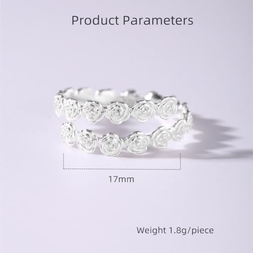 Dtja Cute Flower Stacking Statement Ring for Women 925 Sterling Silver Promise Engagement Adjustable Rose Camellia Open Wrap Finger Rings Comfort Fit Boho Holiday Valentine Wedding Jewelry 6