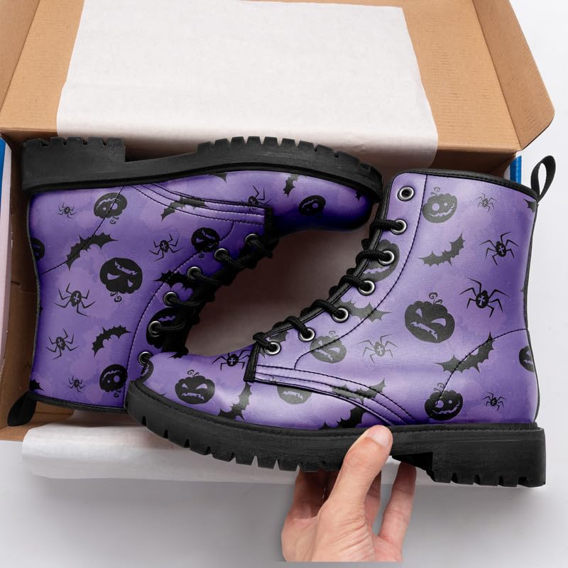 • Spooky Halloween Design: Celebrate Halloween in style with our combat boots featuring bold prints of skulls, pumpkins, and ghostly figures. Perfect for spooky parties, cosplay, and fall festivals