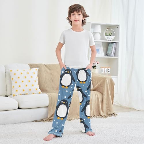 HOT ! ZZXXB Penguin Winter Snow Print Boys Long Pants Soft Trousers Elastic Waist Kids Lounge Bottoms with Pockets S-XL