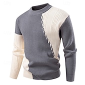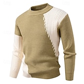More information about Men's Pullover Sweater Jumper Knit Sweater Ribbed Knit Regular Tops Knitted Color Block Crew Neck Fashion Basic Vacation Daily Wear Clothing Apparel Winter Khaki Beige S M L