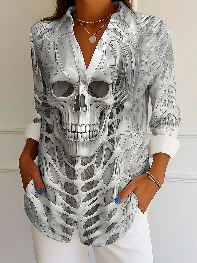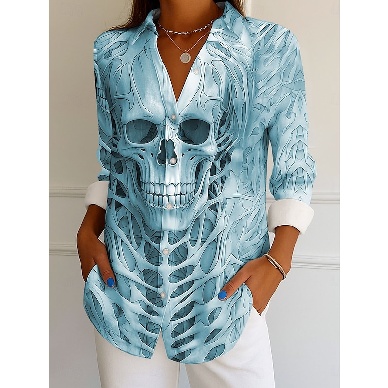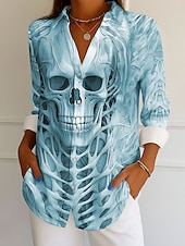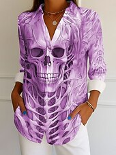 More information about Halloween Women's Shirt Graphic Skull Elegant Vintage Tropical Long Sleeve Bishop Sleeve Shirt Collar Regular Tops Daily Holiday Print White Blue Purple Khaki Spring Fall Winter