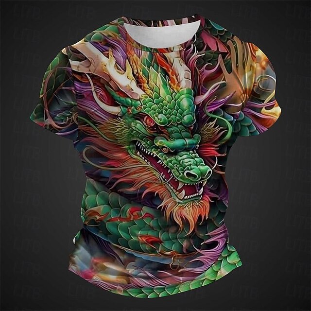 More information about Men's Graphic Animal Dragon T Shirt Short Sleeve T shirt 3D Print Crew Neck Shirt Designer Casual Subculture Sports Outdoor Holiday Going out Light Green Red Burgundy Spring & Summer Clothing Apparel