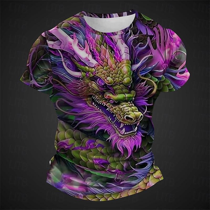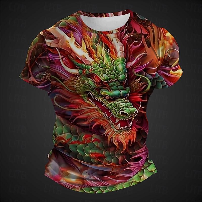 Highlights [Fabric] : Crafted from a high-quality polyester blend, this T-shirt offers a smooth and comfortable fit with micro-elasticity, perfect for both active and casual wear throughout spring and summer. [Fit] : Designed in a regular fit, this short-sleeve T-shirt provides ease of movement and a relaxed silhouette, making it a versatile addition to any wardrobe. [Design Highlights] : Featuring a dramatic 3D graphic print of a green dragon bursting with vibrant shades of red, purple, and orange, this shirt stands out with its intricate and dynamic illustration. The crew neck and classic styling ensure a timeless appeal, while the sublimation print technique guarantees that the vibrant colors remain pristine and fade-resistant. [Occasions] : Ideal for an array of settings such as outdoor sports, holidays, casual outings, and more, this T-shirt caters to those who appreciate bold and unique fashion statements with a subculture flair. [Size Options] : Available in a range of sizes from S to 3XL, this T-shirt is designed to fit adults comfortably, offering a range of options to suit different body types and preferences.