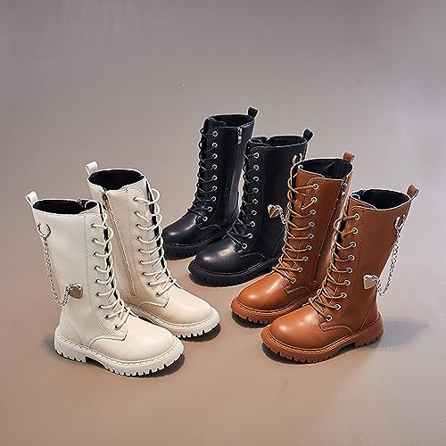 HOT ! Kid's Girl's Waterproof Leather Lace-Up Zipper Mid Calf Combat Boots Outdoor Riding Boots Winter Boots Dress Princess Shoes(Toddler/Little Kid/Big Kid)