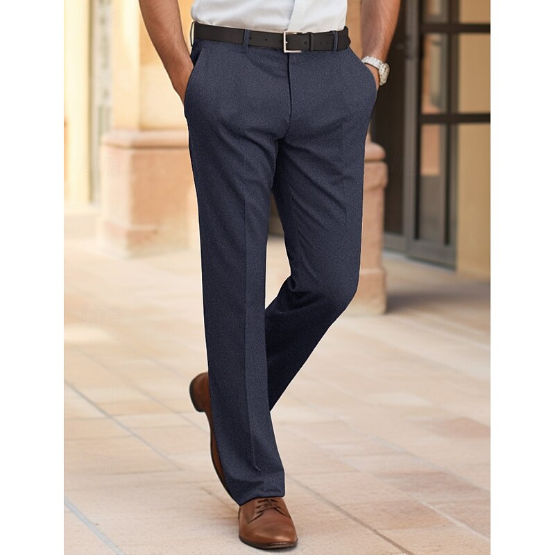Men's Dress Pants Trousers Suit Pants Pocket Plain Comfort Breathable Outdoor Daily Going out Fashion Casual Black Dark Blue 10