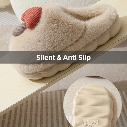 Mushroom Slippers for Women & Men House Shoes Cozy Winter Warm Indoor Couple Fuzzy Non Slip Home Bedroom Lightweight Thick Sole Soft Ladies 6