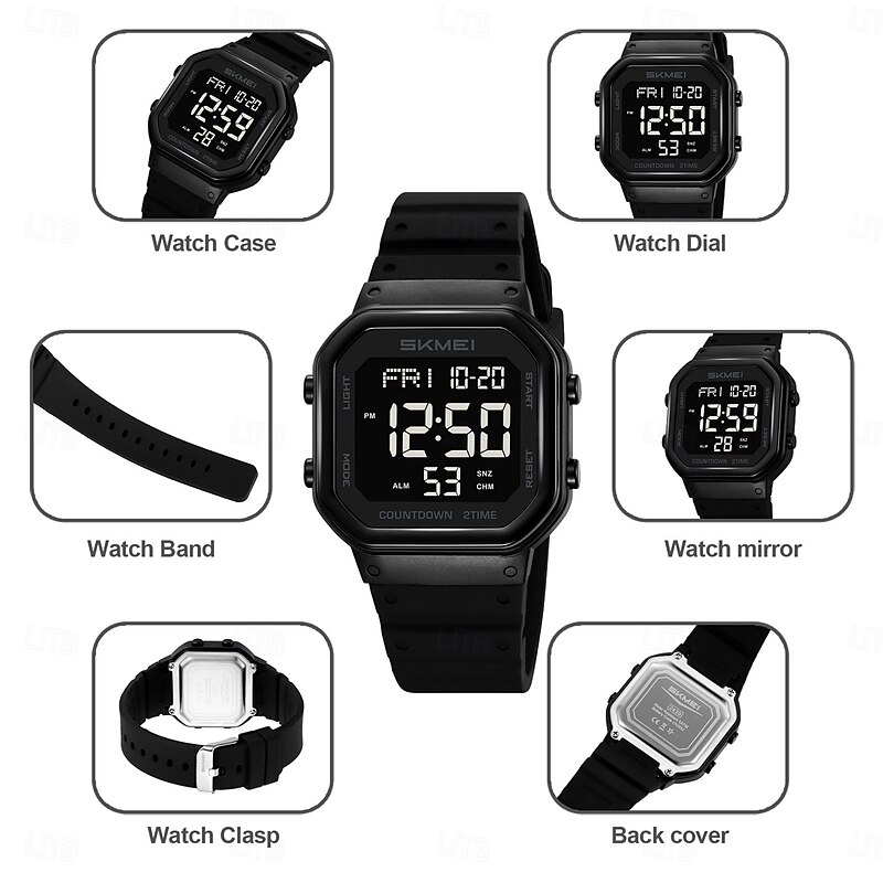 SKMEI Ins Wind Square Multi functional Waterproof Electronic Watch for Male and Female Students 15