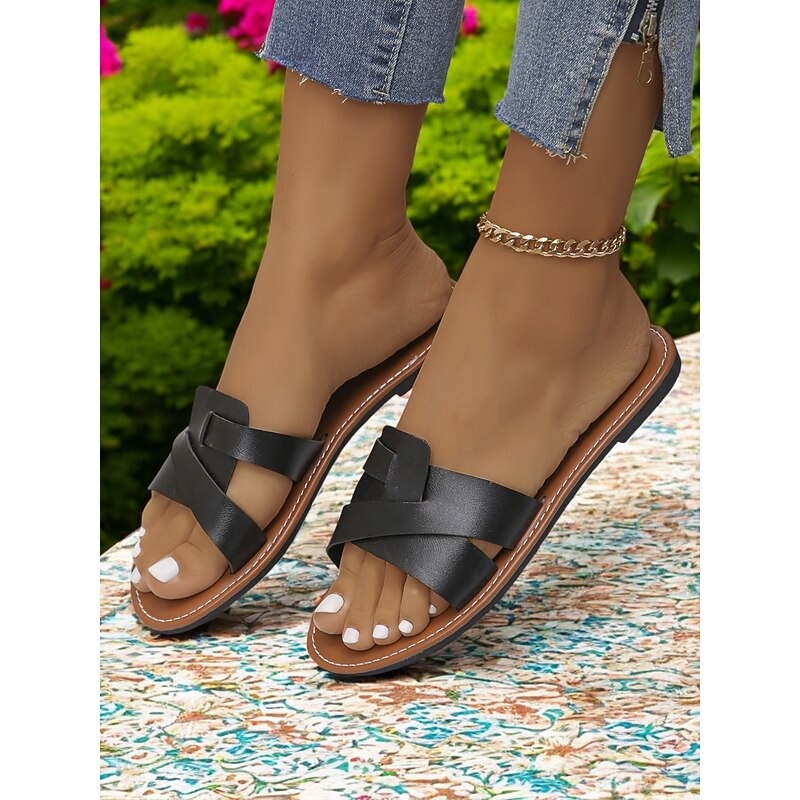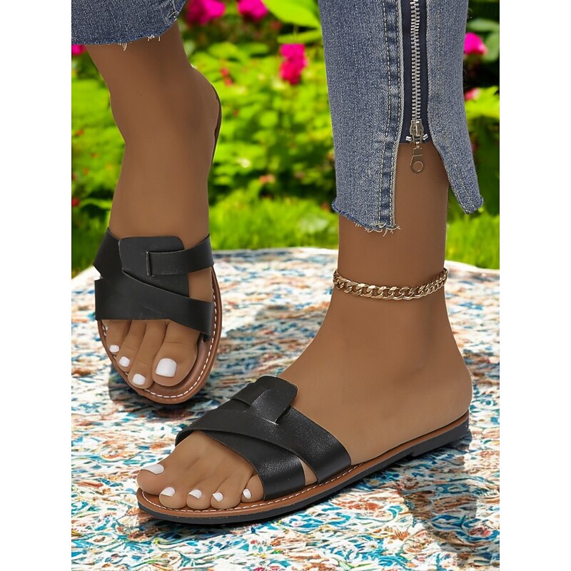 HOT ! Women's Red Cross-Strap Flat Sandals with Open Toe and Comfortable Sole - Stylish Summer Footwear for Beach Trips and Casual Outings