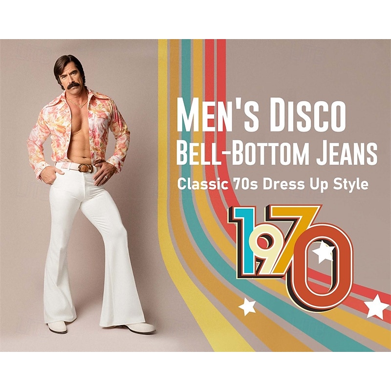 $37.99 - Retro Vintage 1970s Groovy Bell Bottom Pants Flared Trousers Disco mid rise sky Psychedelic Fancy Dress Men's Halloween Carnival Vacation Music Festival Festival Adults' Pants 2025. Shop for cheap Bottoms online? Buy at lightinthebox.com on sale today!
