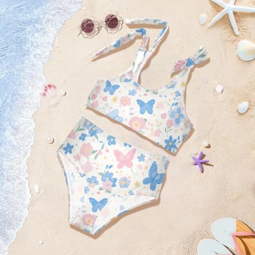 KLL Butterflies on White Pink Girls' 2 Piece Bikini Sets Quick-Dry Swimsuits Swimming Suits Adjustable Strap 2