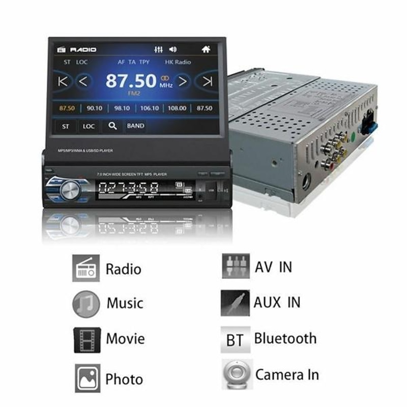 More information about Newest 7" HD 1080P Retractable Touch Screen Car Radio Stereo 1 Din Bluetooth Car MP5 Player Support USB/AUX/FM/ Mirror Link Function+ Rearview Camera