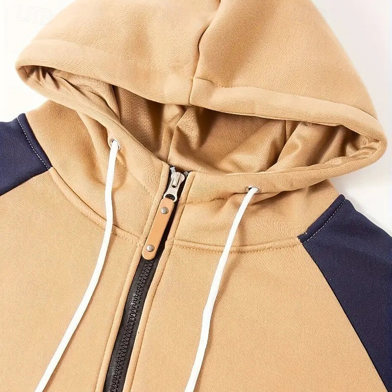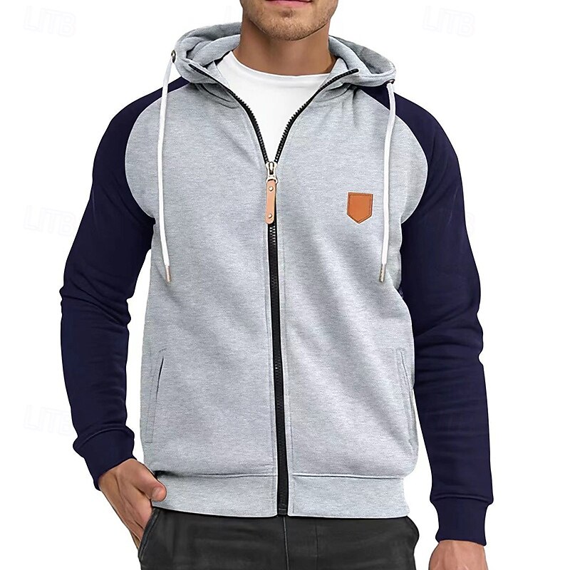 More information about Men's Hoodie Full Zip Hoodie Fleece Hoodie Black Navy Blue Camel Light Grey Dark Gray Hooded Plain Patchwork Color Block Sports & Outdoor Casual Daily Streetwear Cool Sportswear Spring & Fall
