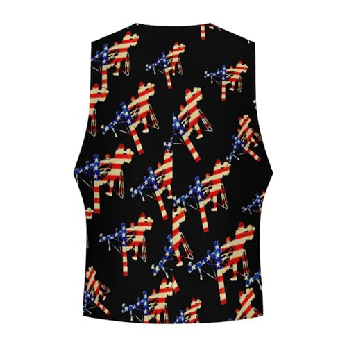 Lineman U.S. Flag Trendy Vest Suit for Men V Neck Formal Dress Waistcoat Vests Business Slim Fit 3