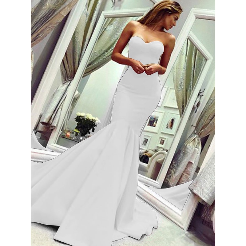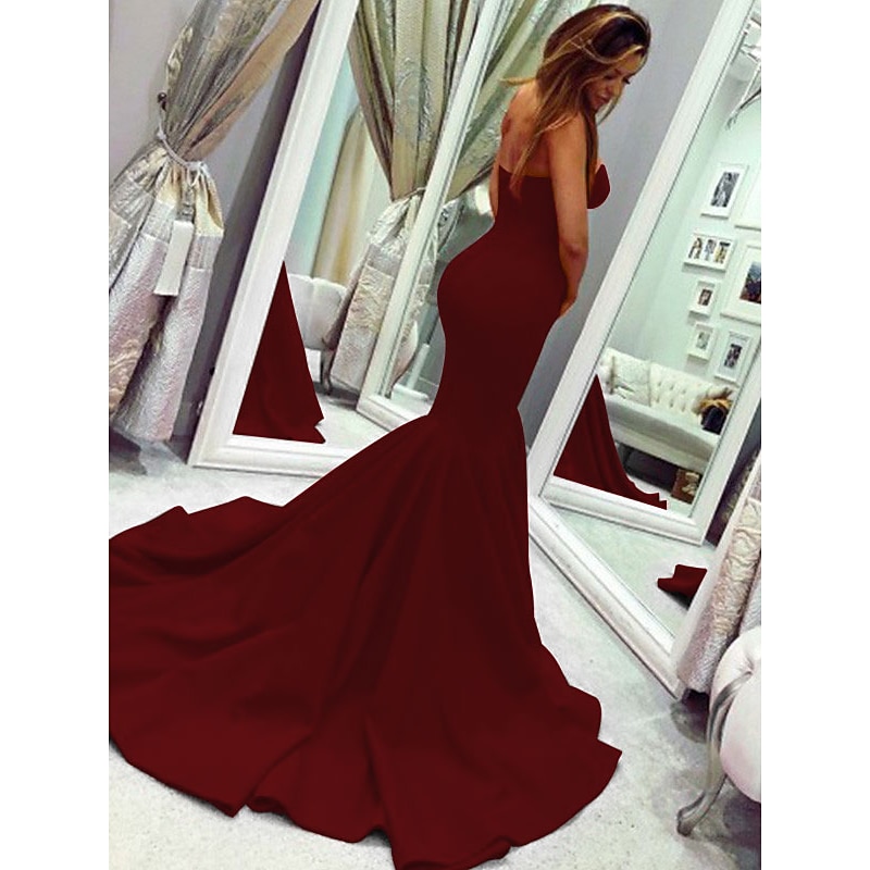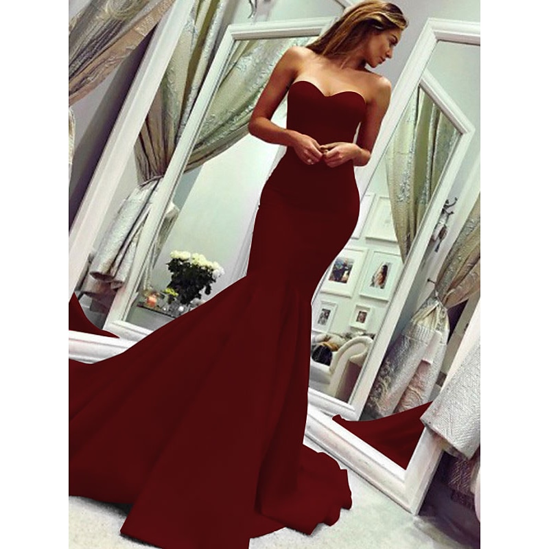 More information about Mermaid Evening Gown Minimalist Dress Valentine's Day Wedding Guest Court Train Sleeveless Strapless Stretch Fabric with Pleats Masquerade Dress
