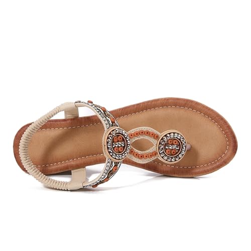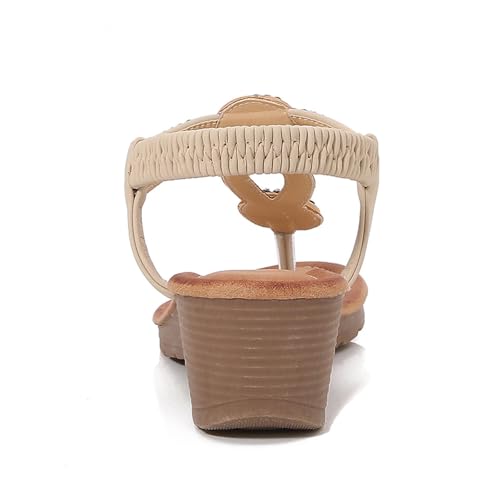 Women's Bohemian Wedge Sandals Summer Comfortable Flip Flops Beach Thong Sandals Fashion Open Toe Dressy Elastic 6