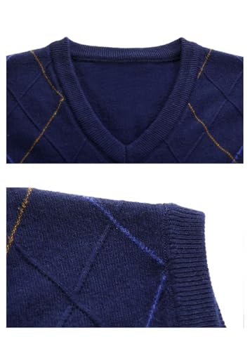 Men Wool Knit Vest Sleeveless Sweaters Waistcoat V-Neck Plaid Pullover Slim Business Tank Top 5