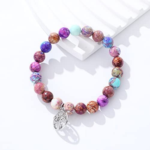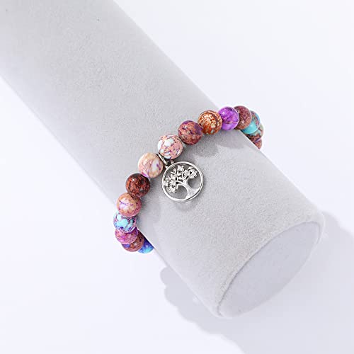 QWNHONEY Mothers Day Gift for Grandma Mom Mother in Law Sister in Law Bonus mom Granny Nana Valentine's Day Birthday Anniversary Pink Red Natural Stone Tree of Life Bracelet 5