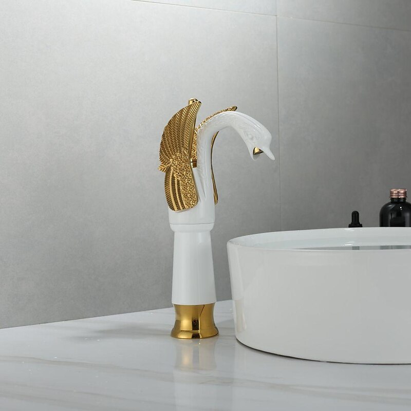 HOT ! Antique Bathroom Sink Mixer Faucet, Washroom Basin Taps Brass Swan Shape Copper Electroplated Finish Vintage Style Single Handle One Hole Water Taps with Cold Hot Hose