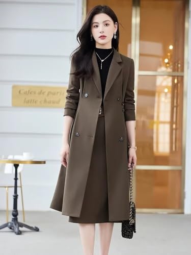 Womens Mid Length Suit Set Winter Smart Casual Overcoat Pencil Skirt Separates-Coat & Skirt 2