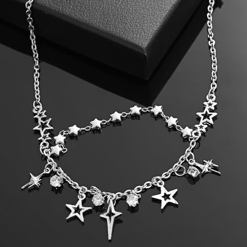 • Y2k Star Necklace:The star necklace with a sparkling zircon silver star pendant and a delicate chain,the various star design adds glamour to the wearer,making you more attractive.