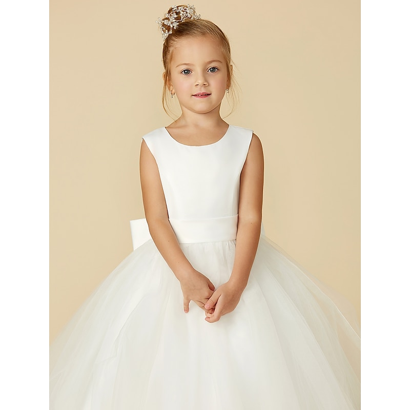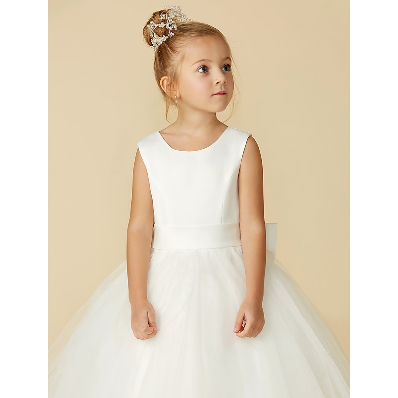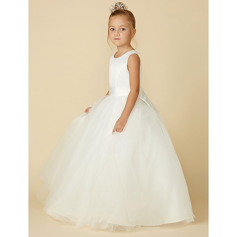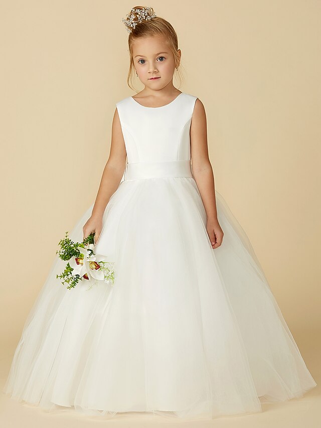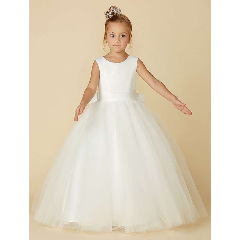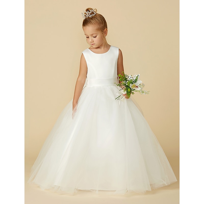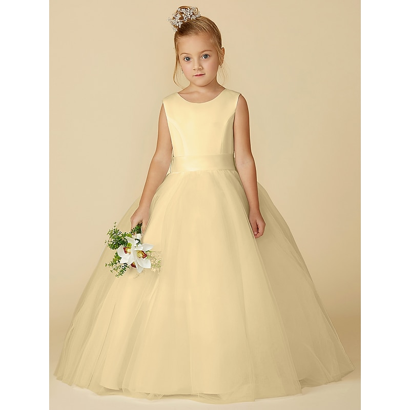More information about A-Line Floor Length Flower Girl Dress First Communion Girls Cute Prom Dress Satin with Sash / Ribbon Elegant Fit 3-16 Years dress to impress