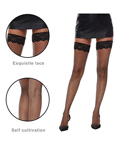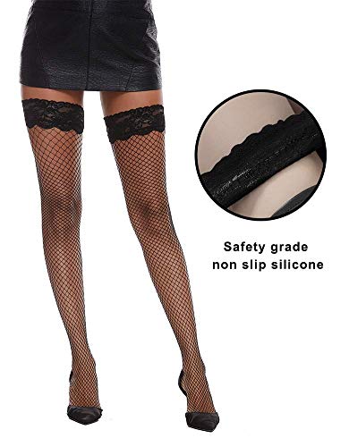 MANZI Fishnet Thigh High Stockings for Women Knee Highs with Silicone Lace Top 5