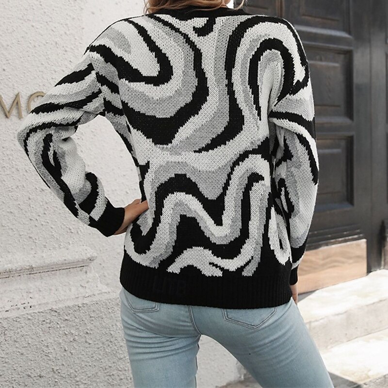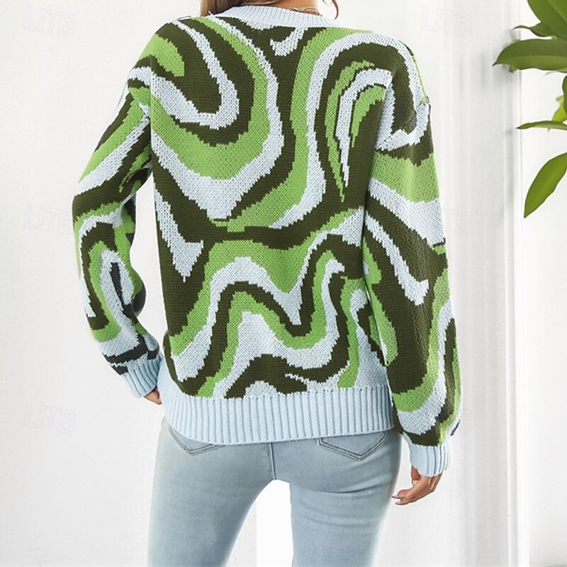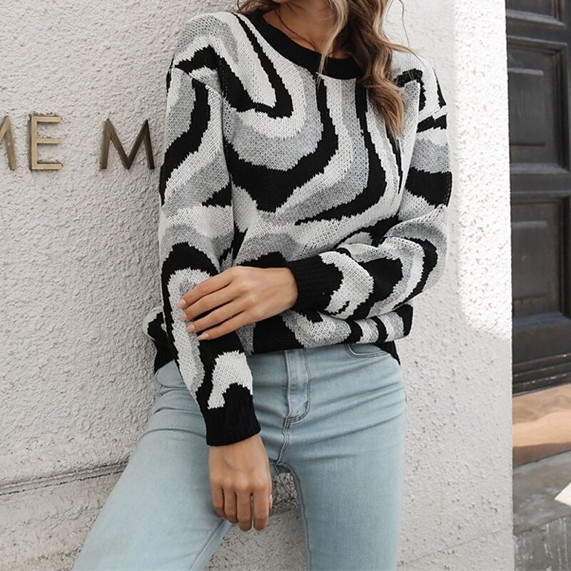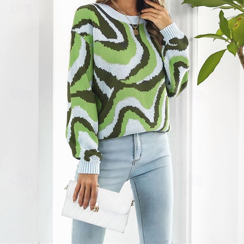 More information about Women's Pullover Casual Color Block Chunky Crew Neck Knitted Long Sleeve Regular Tops Knit Daily Holiday Going out Black Blue Fall Winter