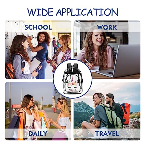 Personalized Unicorn Clear Backpack for Girls With Name, Transparent Heavy Duty Backpack With Reinforcing Straps For School Sports Workplace, Custom Waterproof Clear Book Bag, Back to School Gift 5