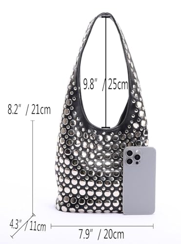 • Large Capacity:7.9*4.3*8.3 “/20*11*21 cm (L x W x H). The studded purse can easily hold items such as wallets, mobile phones, cosmetics, and books, meeting the storage needs for daily outings and short-term trips