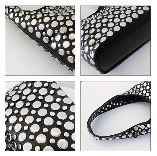 More information about Trendy Leather Shoulder Bags For Women Studded Hobo Bag For Travel Womens Y2K Underarm Purse Small Punk Tote Handbag