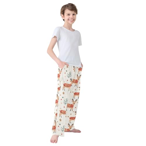 Deer and Stars Boys Pants Boys Athletic Pants Long Pant for Boywith Pockets Wide-Leg Size 6-14Y 6