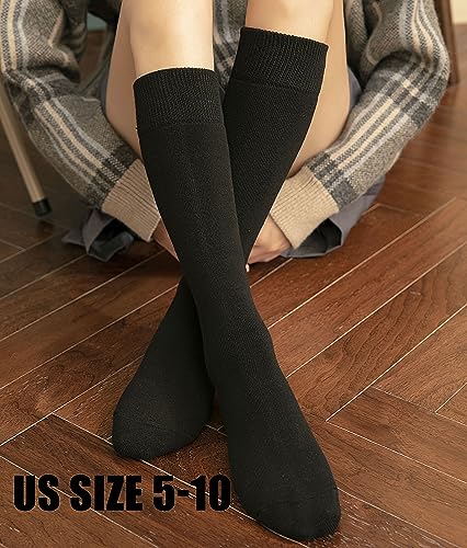 • 【HIGH-QUALITY MATERIAL】 Made of 80% premium cotton,5% nylon 2% Spandex & 1% Elastic. These thermal socks reach up to the knee and are incredibly soft, stretchable, and suitable for your feet. They are twice as thick as regular cotton socks, just like shown in the pictures.