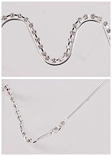 • FASHION HALF FRAME EYEGLASSES: exclusive waves metal frame with rhinestone, Fashionable Novel Style, It is Suitable for Show Your Unique And Cool Attitude To Life.