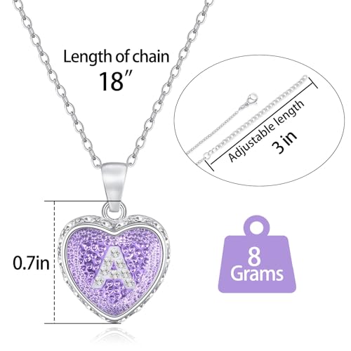 Ahiller Heart Initial Necklace,Crystal Diamond Letter Pendant,19"-21" Adjustable Necklaces for Women Trendy Name Jewelry Purple 5