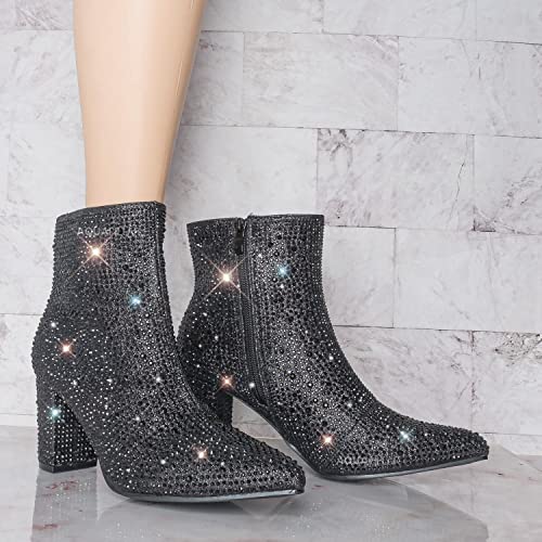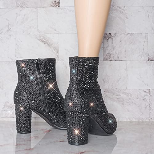 Women Rhinestone Block Chunky Heel Ankle Bootie Iceberg 12 By Forever shoes Black 5.5 5