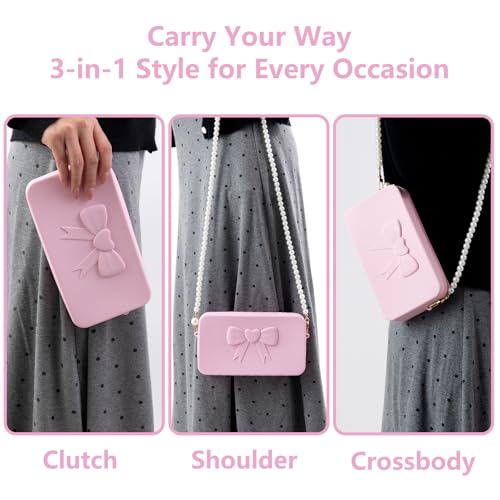 Mao'er Heart-Shaped Bows Pearl Shoulder Bags, Crossbody Purses, Clutches, Makeup Organizers for Everyday Essentials 3