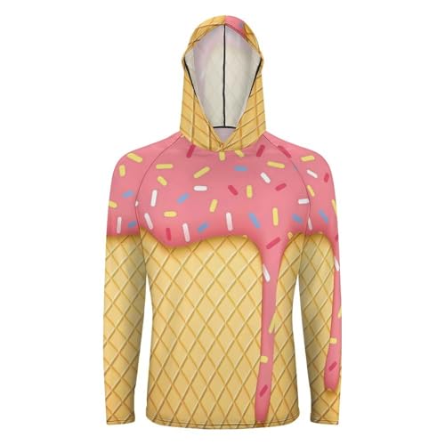 • UV Protection: Designed for Optimal UV Protection During Water Activities, This Ice Cream And Waffle Sun Hoodies Shields Your Upper Body from the Sun's Rays While Maintaining a Comfortable Fit. This Ice Cream And Waffle Fishing Hoodie for Men Provides Better Shielding for Your Face and Neck