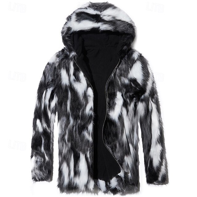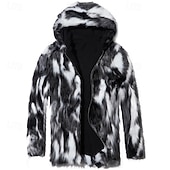More information about Men's Winter Jacket Casual Jacket Faux Fur Coat Vacation Daily Thermal Warm Pocket Fur Winter Leopard Print Fashion Streetwear Hooded Regular Black Jacket