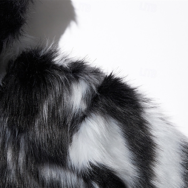 Men's Winter Jacket Casual Jacket Faux Fur Coat Vacation Daily Thermal Warm Pocket Fur Winter Leopard Print Fashion Streetwear Hooded Regular Black Jacket 9