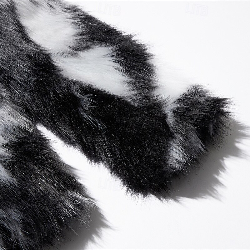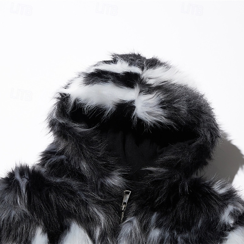 Men's Winter Jacket Casual Jacket Faux Fur Coat Vacation Daily Thermal Warm Pocket Fur Winter Leopard Print Fashion Streetwear Hooded Regular Black Jacket 10